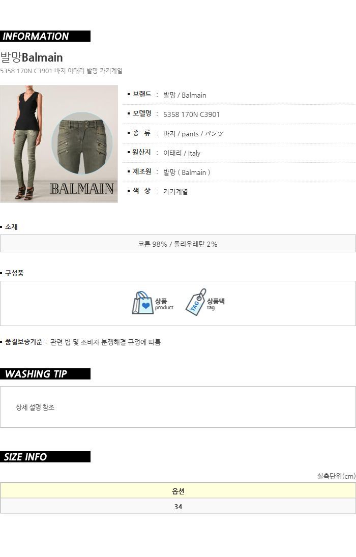 Product Name: Balmain Greenwashing Biker Pants 5358 170N C3901 141451795