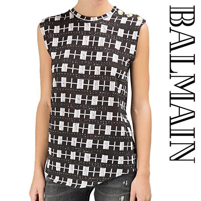 Product Name: Balmain Shawl with Gold Buttons Sleeveless Top 141451724