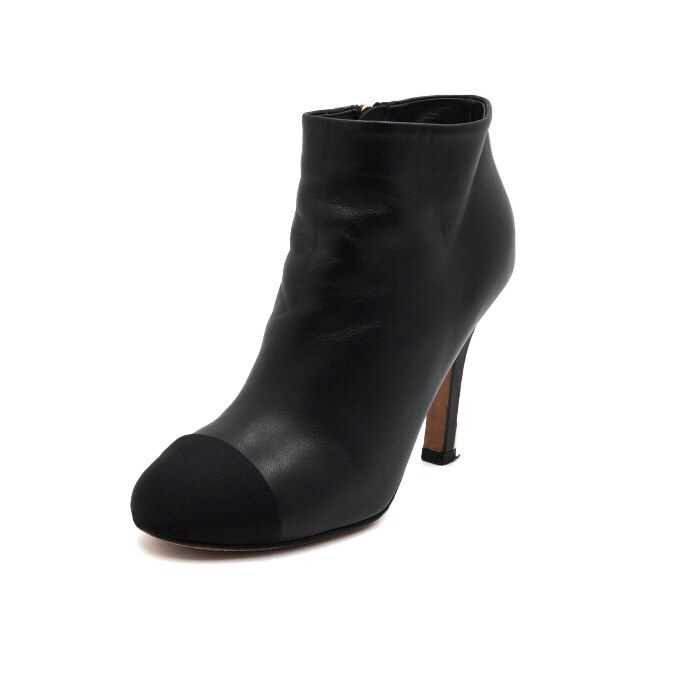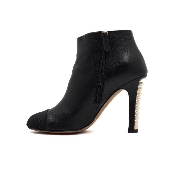 - G32752 Schwarzes Leder Gold CC Perlen Absatz Stiefeletten für Damen