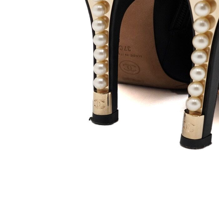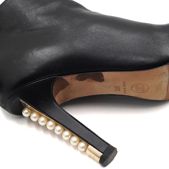 g32752 schwarzes leder gold cc perlen absatz stiefeletten damen aa60840 152317067
