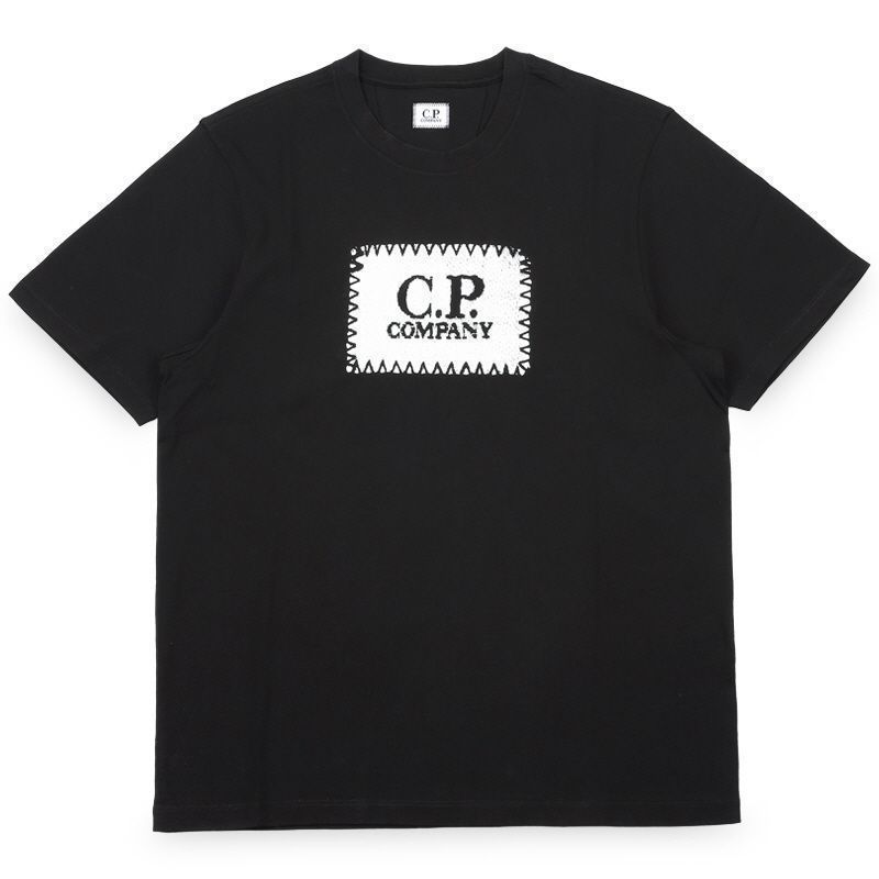 Product Name: CP Company Men's Label Logo Printed Short Sleeve T-Shirt (Black) 005100W 999 152920133