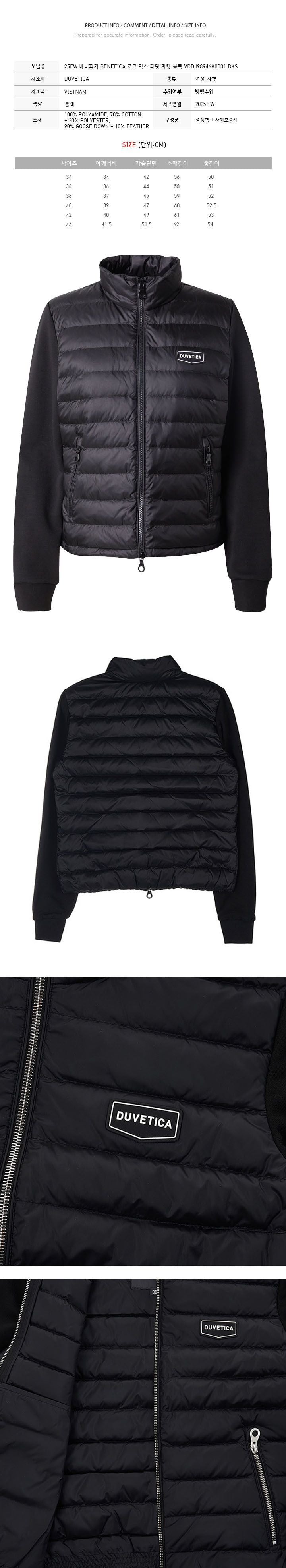 Product Name: DUVETICA 25FW Benefica Logo Mixed Padding Jacket Black VDDJ98946K0001 BKS 149436028