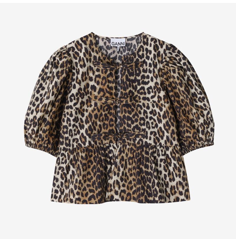 Product Name: Ganni Leopard Print Poplin Peplum Women's Shirt F9116 943 144592007