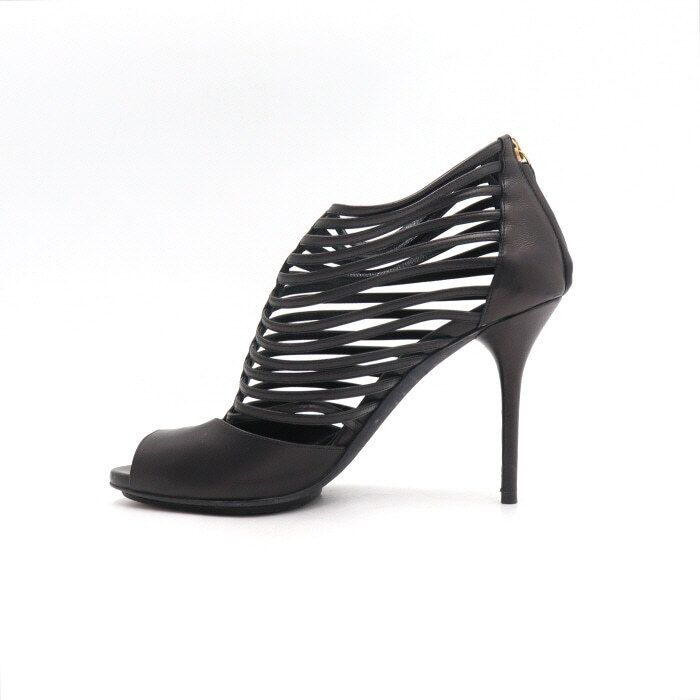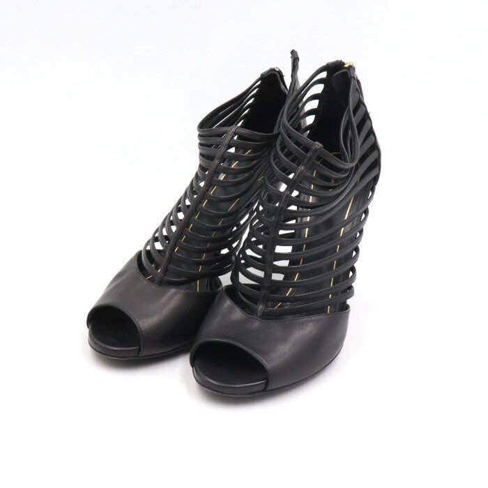 Produktname: Schwarze Leder Sandalen mit Riemen Open Toe Damen Schuhe aa50250