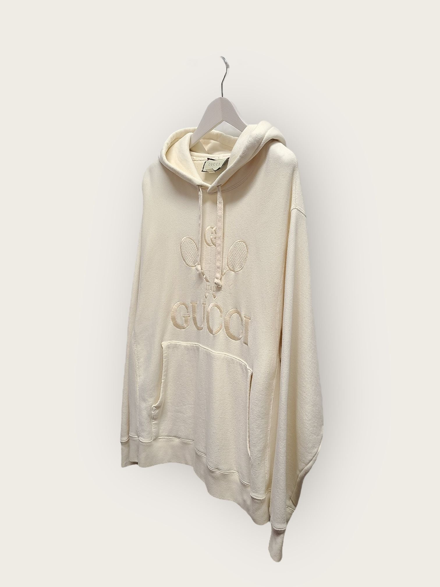 Produktname: Tennis-Logo gesticktes Kapuzenshirt in Elfenbein XL