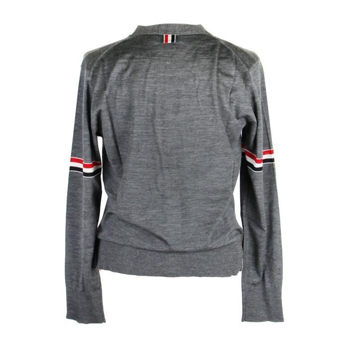 Produktname : Thom Browne Merino Stripe Relax Strickjacke mit V-Ausschnitt – MKC410A Y1014 035