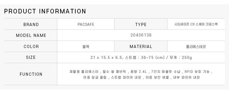 Product Name: Pacsafe Citysafe CX Square 2.4L Crossbody Bag 20436138 144701638