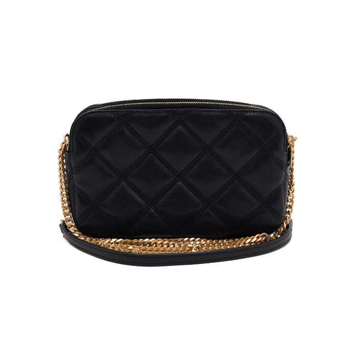 schwarze leder becki doppelreißverschluss gold-kette umhängetasche 608941 152315373