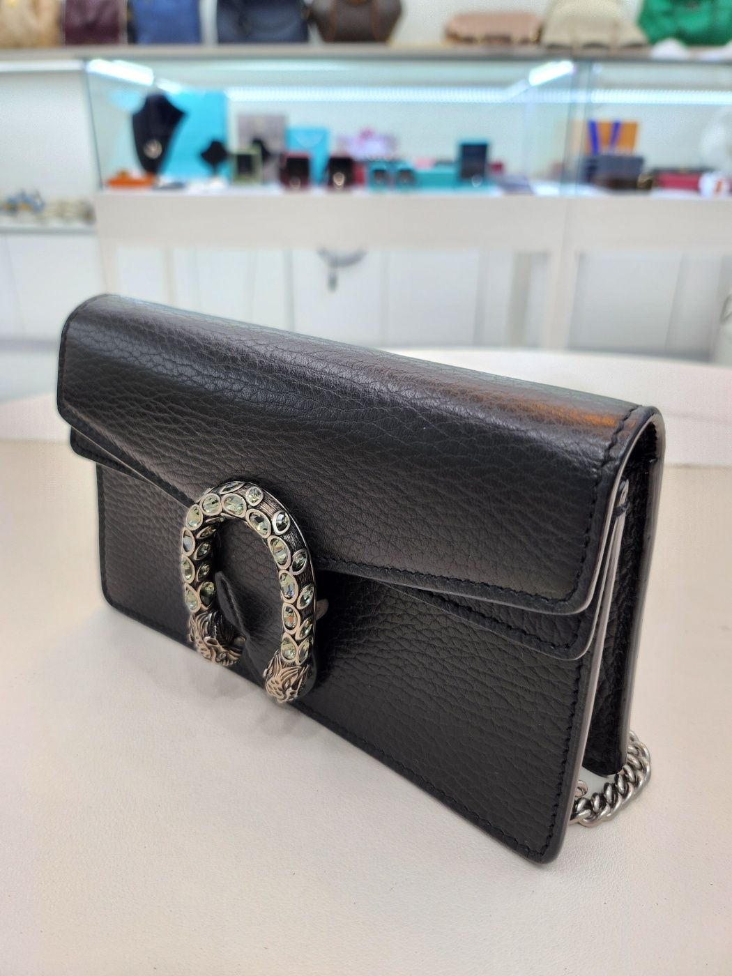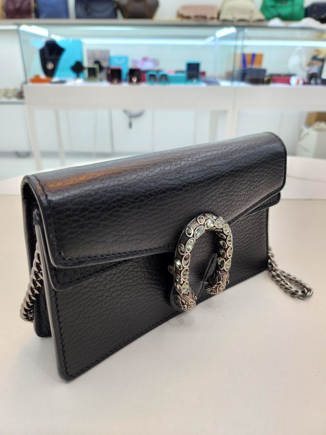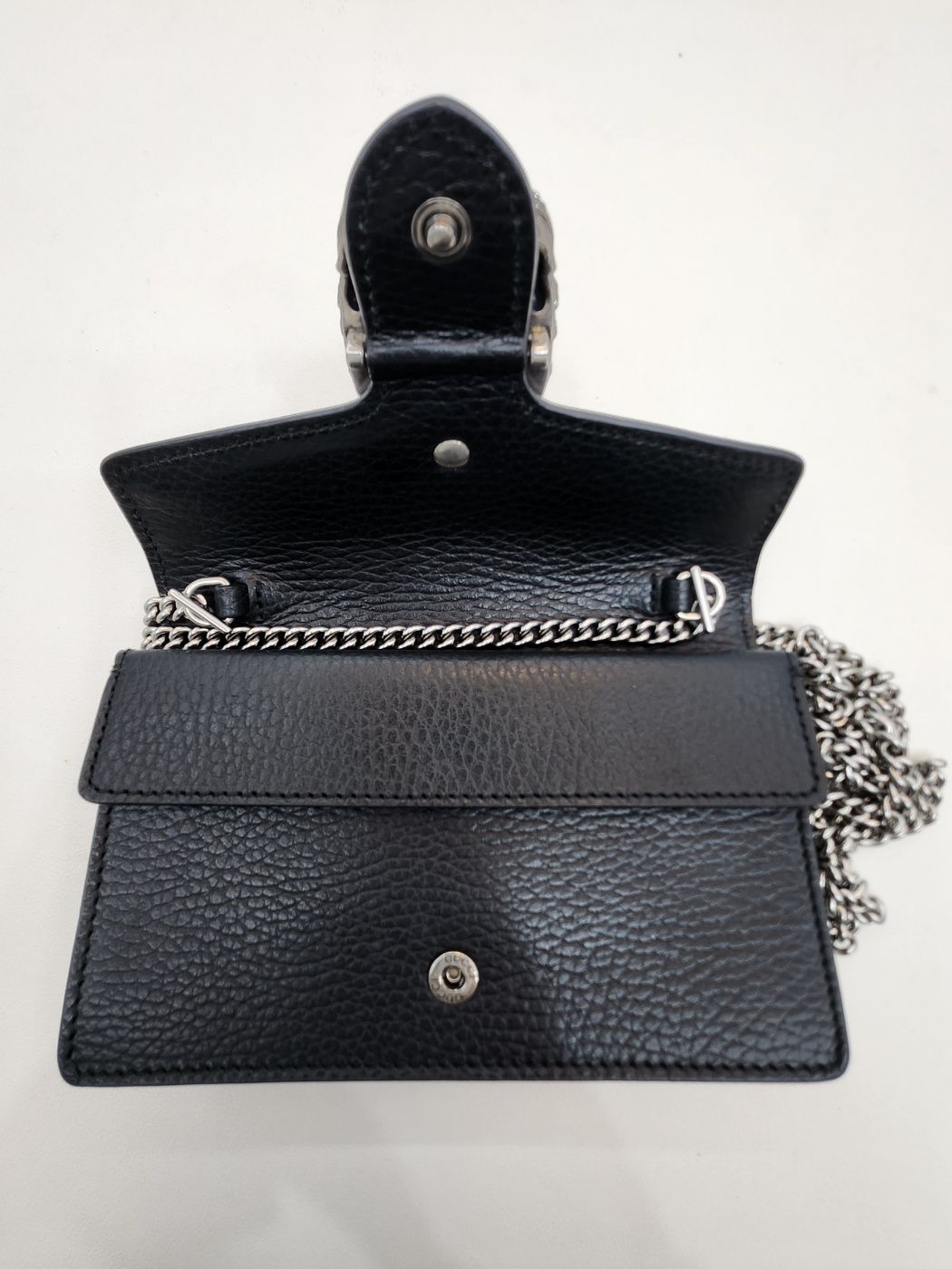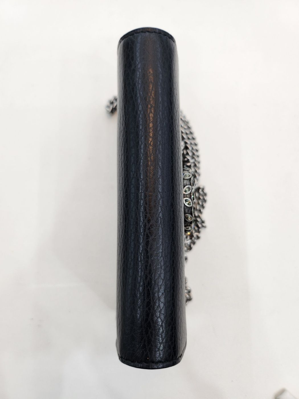 Produktname: Schwarze Leder Kristall Dionysus Super Mini Ketten Crossbody Tasche 476432