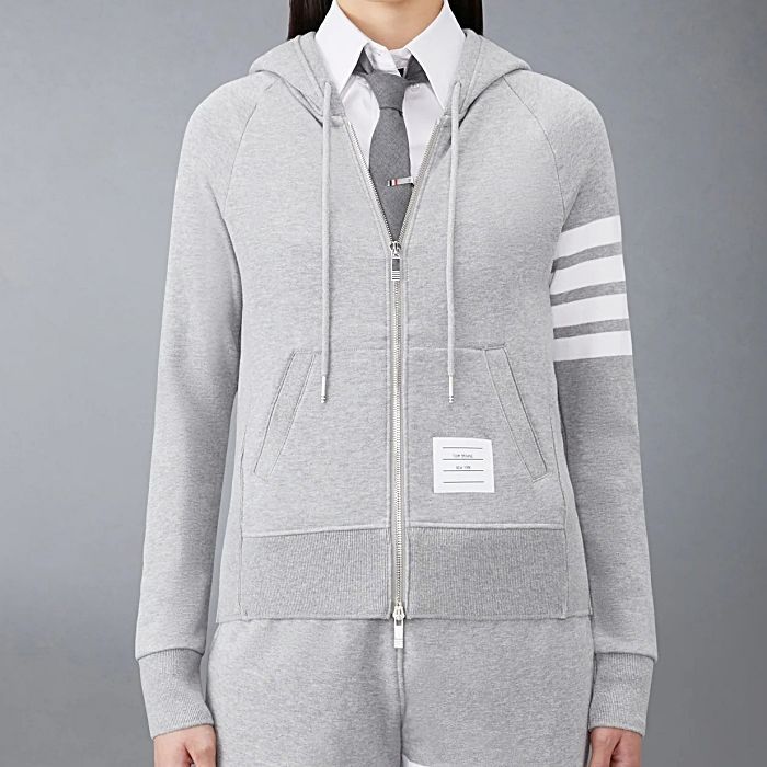 Product Name: Thom Browne 4-Bar Stripe RWB Tab Loopback Jersey Zip-Up Hoodie FJT001A 00535 055 141551180