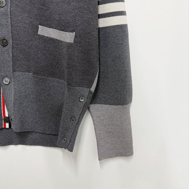 Produktname: Kariertes Woll-Cardigan mit 4 Streifen in Tonal Grau