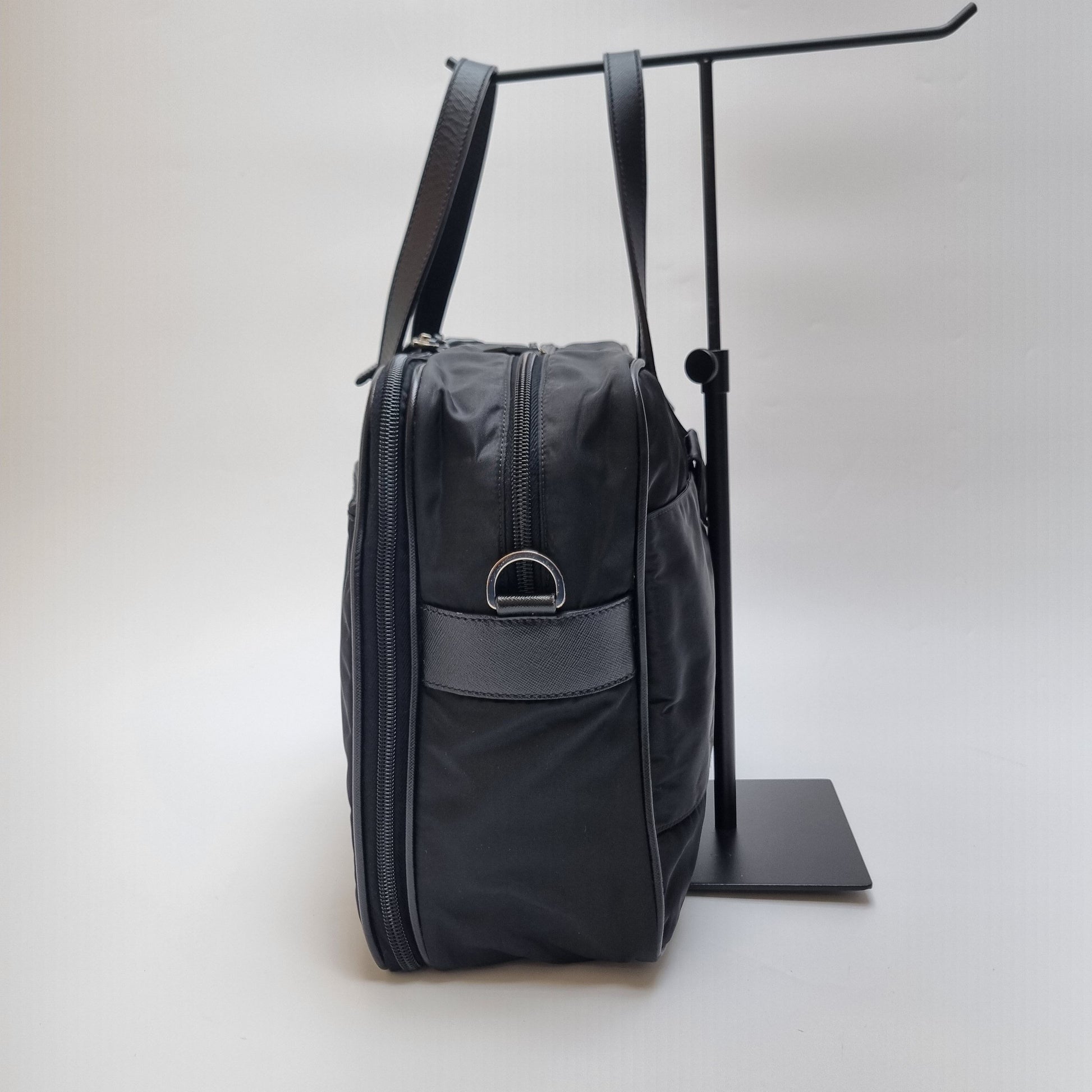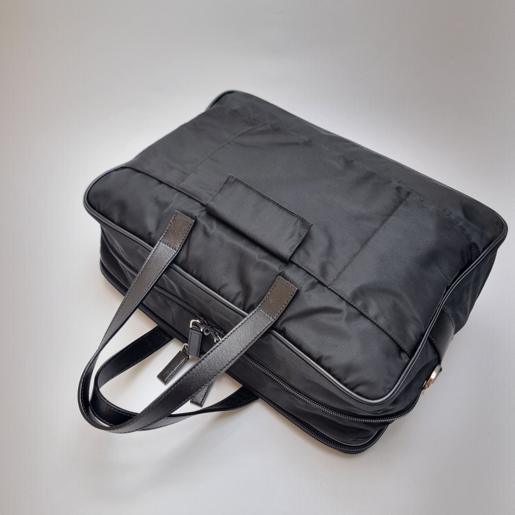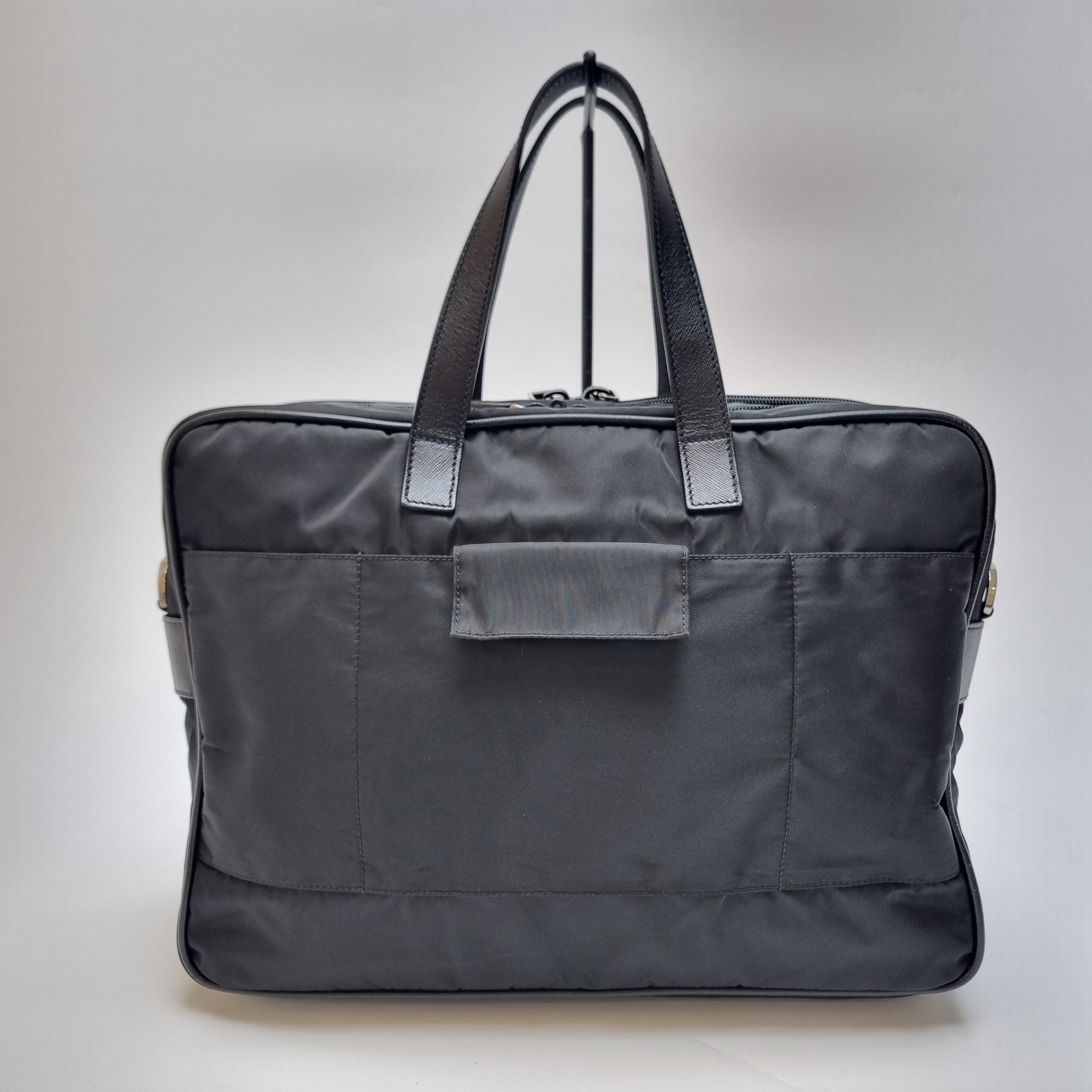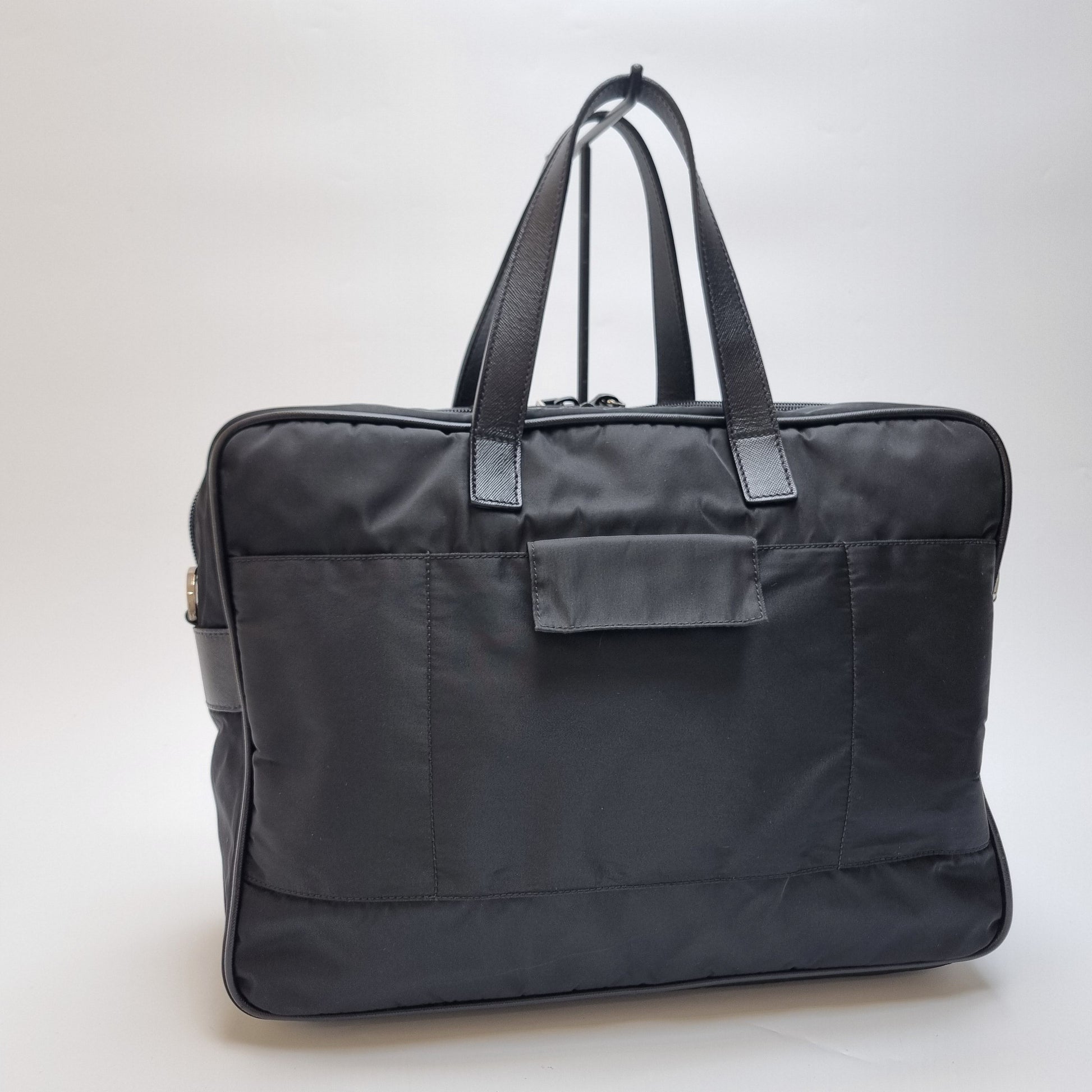 - Die Kombination aus strapazierfähigem Nylonkörper und Saffiano-Ledergriffen spiegelt das minimalistische und stilvolle Design wider.