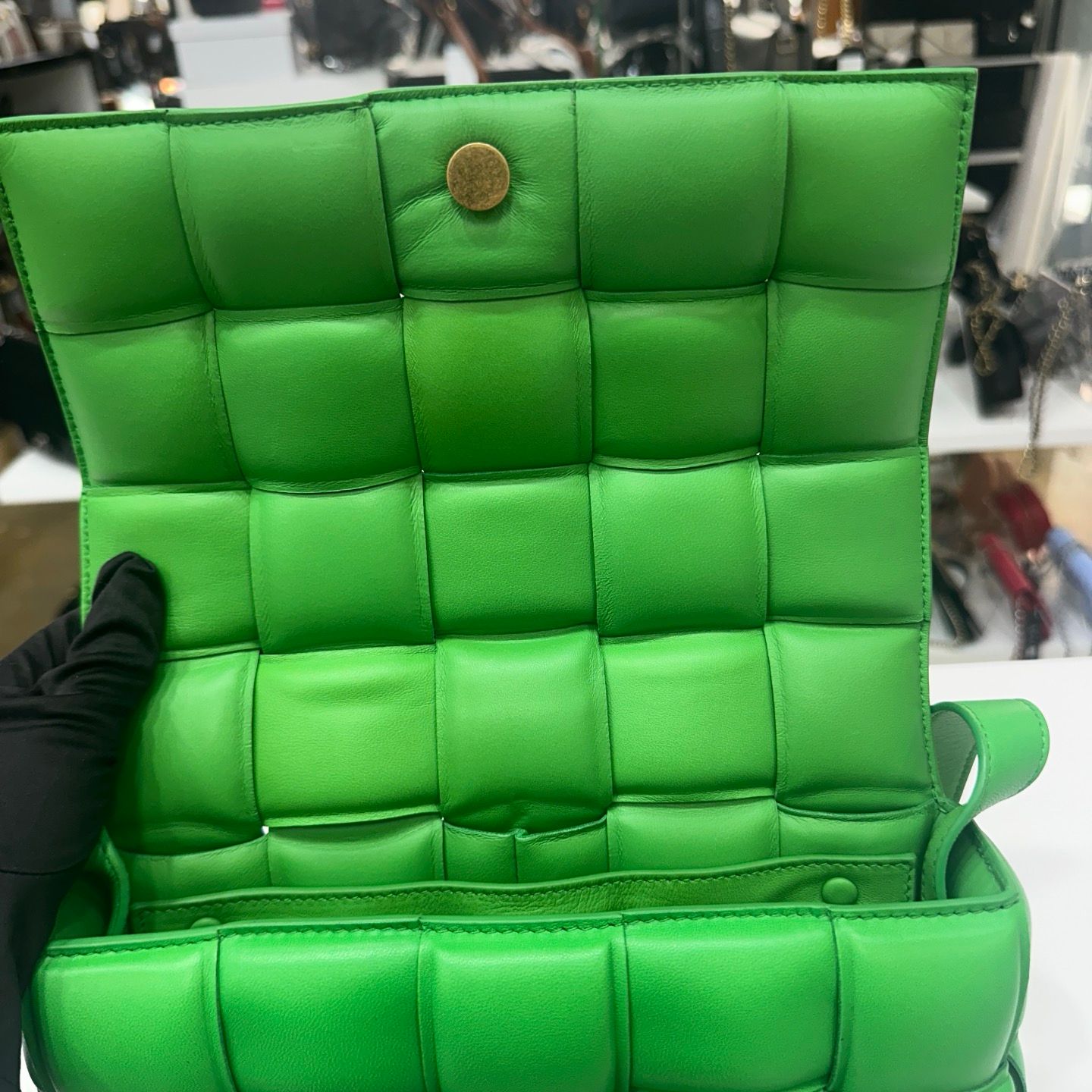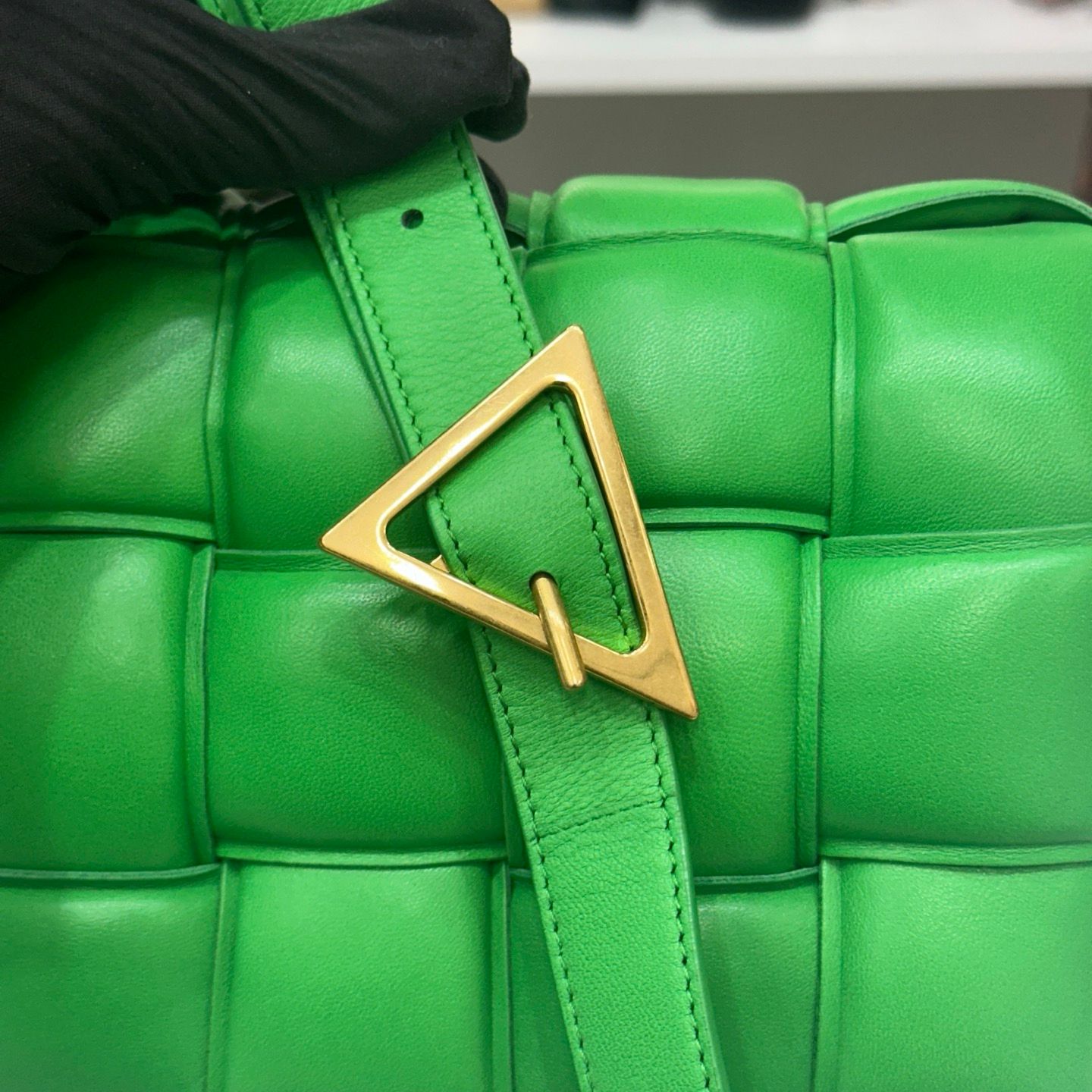 - Produktbeschreibung: Padded Kassetten Tasche, neu interpretiert im typischen Intrecciato-Design von Bottega Veneta aus weichem gepolstertem Leder. Die tiefe Racing Grün Farbe schafft eine luxuriöse und elegante Stimmung und bietet ein leichtes, angenehmes Tragegefühl, das einen sinnvollen Akzent für lässige Looks setzt.