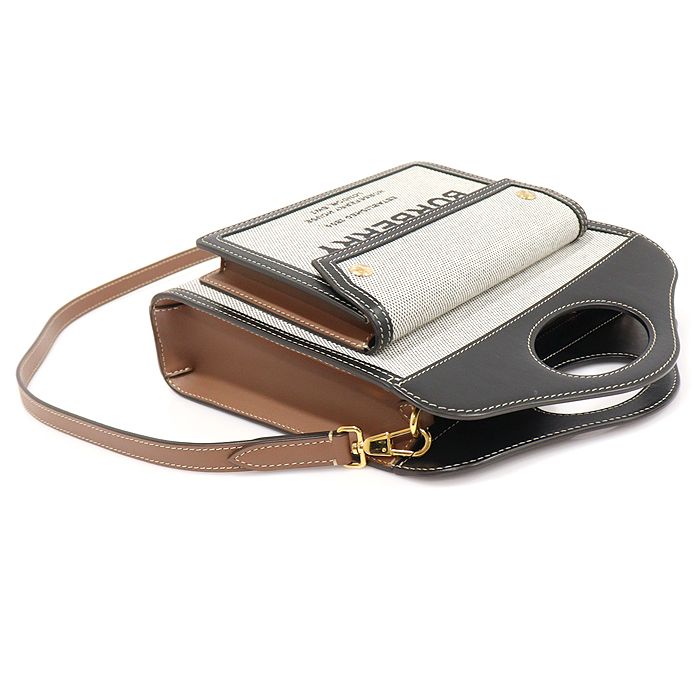 - Baumwollcanvas, schwarzes Kalbsleder, goldfarbene Metallhardware, Innenfutter aus Stoff
