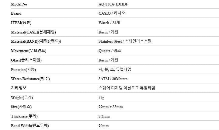 Product Name: Casio Analog Digital Square Vintage Retro Unisex Metal Watch AQ-230A-1D 147856421