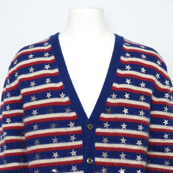 - Zubehör: Blau gestreifter Stickerei Stern lockere Herren Strickjacke.
