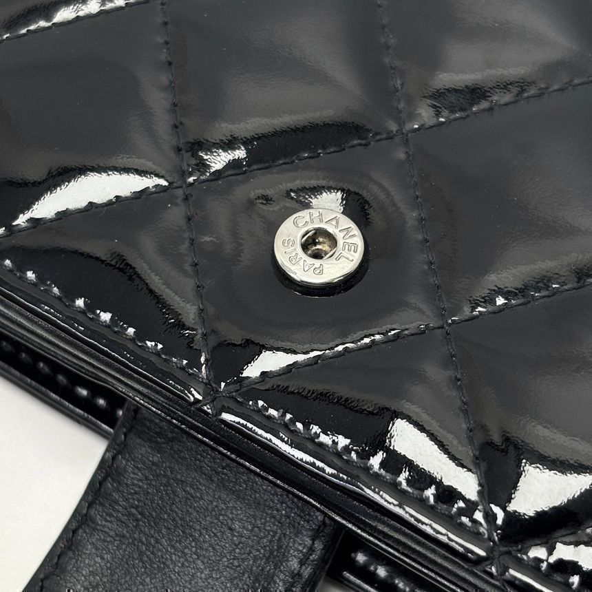 Produktname: Schwarzes Emaille 16. Generation Matelassé CC-Logo Geldbörse 4VCHW23014