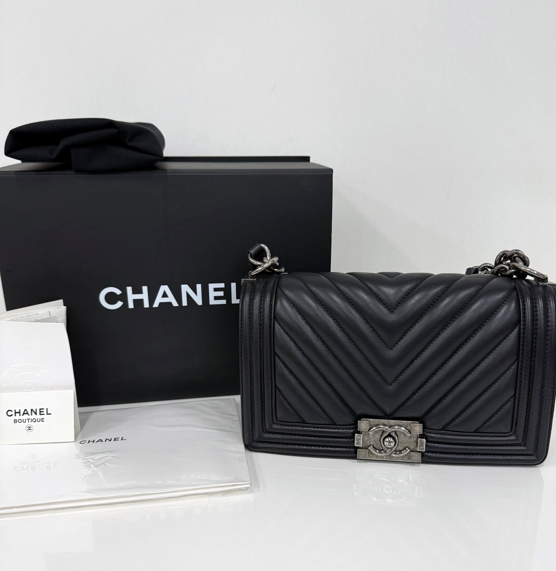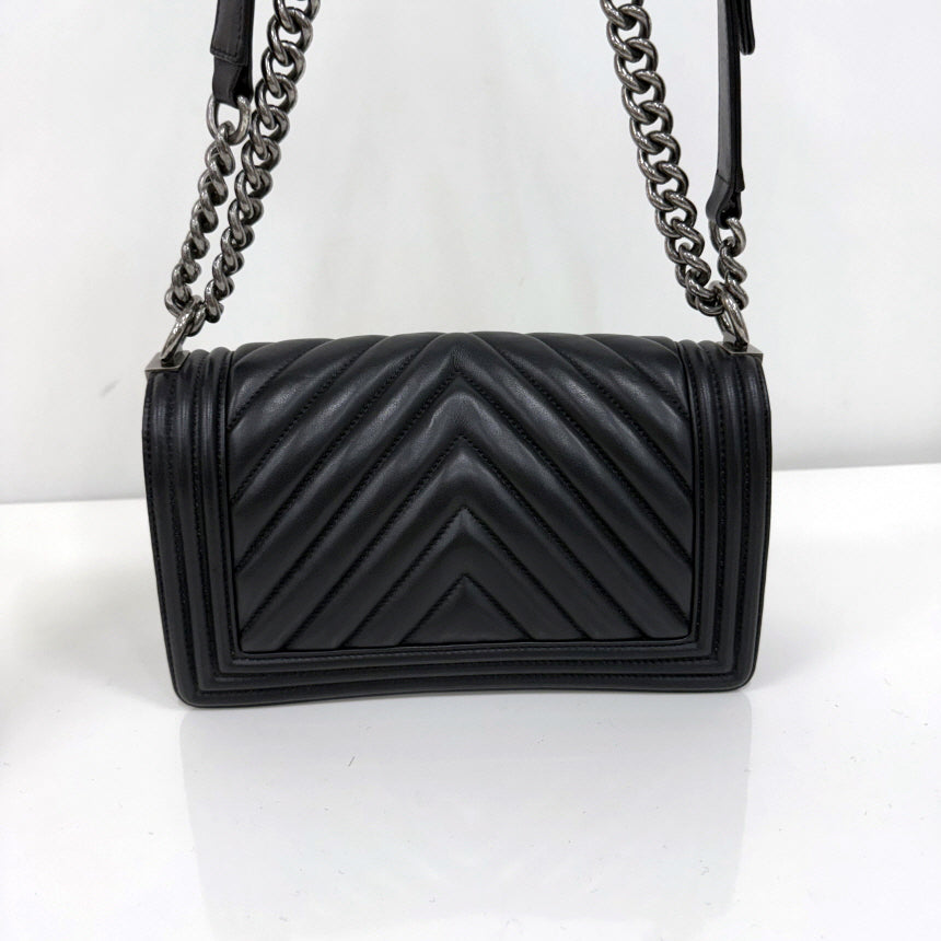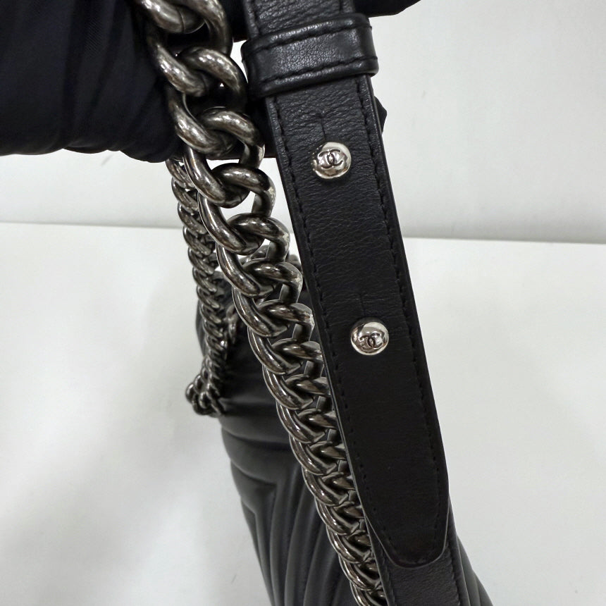 boy bag chevron quilting schwarz silber chain crossbody bag k250825-01 143660389