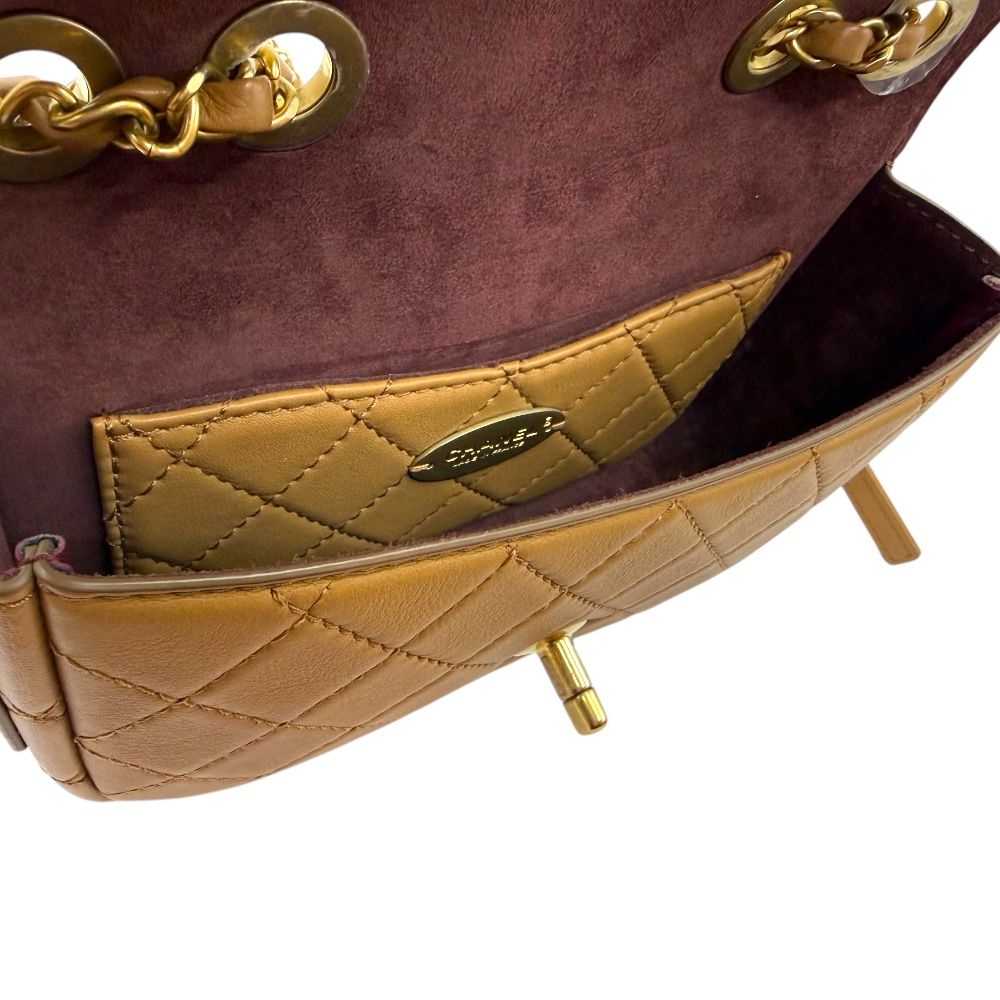 Produktname: CC Logo Flap Coinpurse Schultertasche Kette Braun AS1094