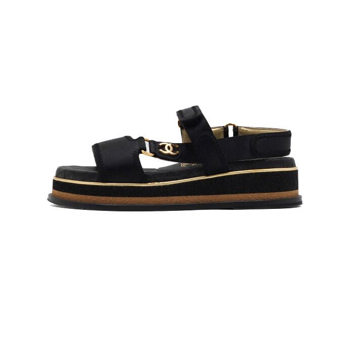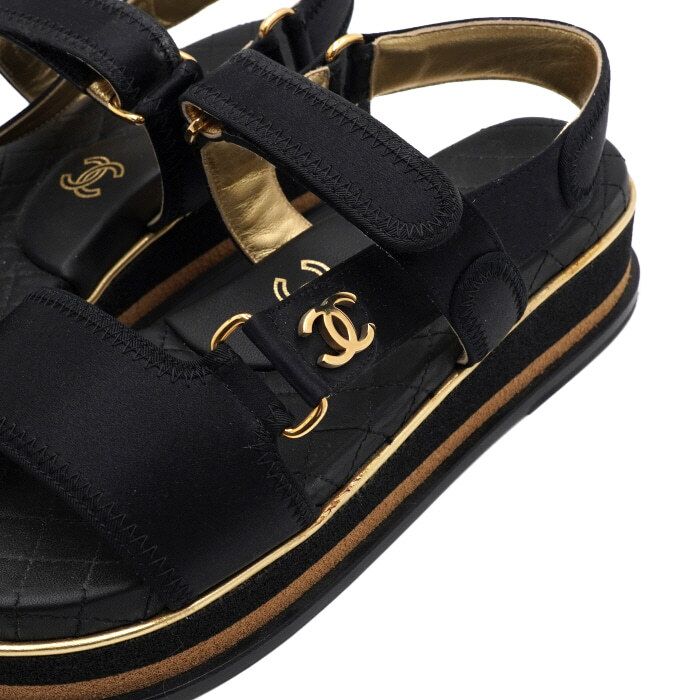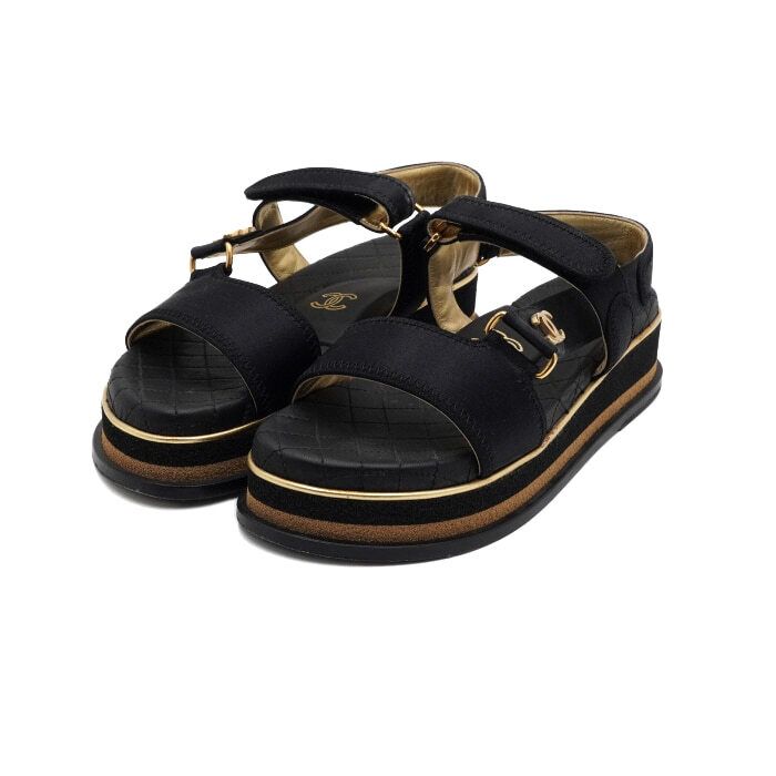 goldene plattform schwarze satin klettverschluss damen sandalen g32676 152317060