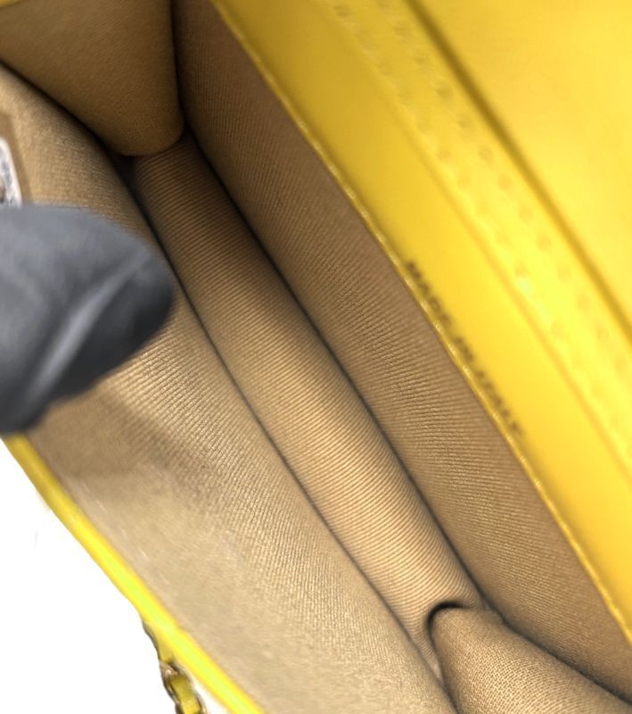 ▪︎ Modell: Mini Gelbe Golden Ball Ketten Crossbody Tasche ▪︎ Zubehör: Box, Dustbag, Booklet, Quittung ▪︎ Farbe: Gelb ▪︎ Material: Leder ▪︎ Größe (cm): (cm) Breite W 12 * Höhe H 9.5 * Tiefe D 3 ▪︎ Besonderheiten ① Körper - insgesamt gut ohne auffällige Lederbeschädigungen. ② Innen - keine Flecken oder Lederbeschädigungen. ③ Ecken - keine Abnutzung. ④ Boden - keine Kratzer oder Abnutzung. ⑤ Handgriff und Riemen - leichte Verschmutzungen / Verfärbungen vorhanden. ⑥ Hergestellt in ITALIEN / Innenaufkleber Bitte beachten: Aufgrund der Größe, Messposition, Methode, Material und des Designs können Abweichungen von 1-3 cm auftreten. Bei Kontakt von alkoholischen Flüssigkeiten wie Parfüm oder Handdesinfektionsmittel mit dem Leder kann das Leder beschädigt werden, daher ist Vorsicht geboten. Bei der Reinigung mit einem Lederreiniger sollten Sie vorsichtig sein, da auch bei nicht gefärbten Produkten die natürliche Farbe abfärben kann. Bitte vermeiden Sie die Verwendung von Reinigungsmitteln so weit wie möglich. Bei Lackleder kann es bei hoher Feuchtigkeit und Temperaturen, wie im heißen Auto im Sommer oder in der Nähe von Heizgeräten im Winter, zu Klebrigkeit kommen, daher ist Vorsicht geboten. Vor allem bei Lackleder kann es zu Verfärbungen kommen, wenn sie längere Zeit in Berührung mit anderen Produkten gelagert werden. Bewahren Sie sie daher immer separat in einem Dustbag auf.
