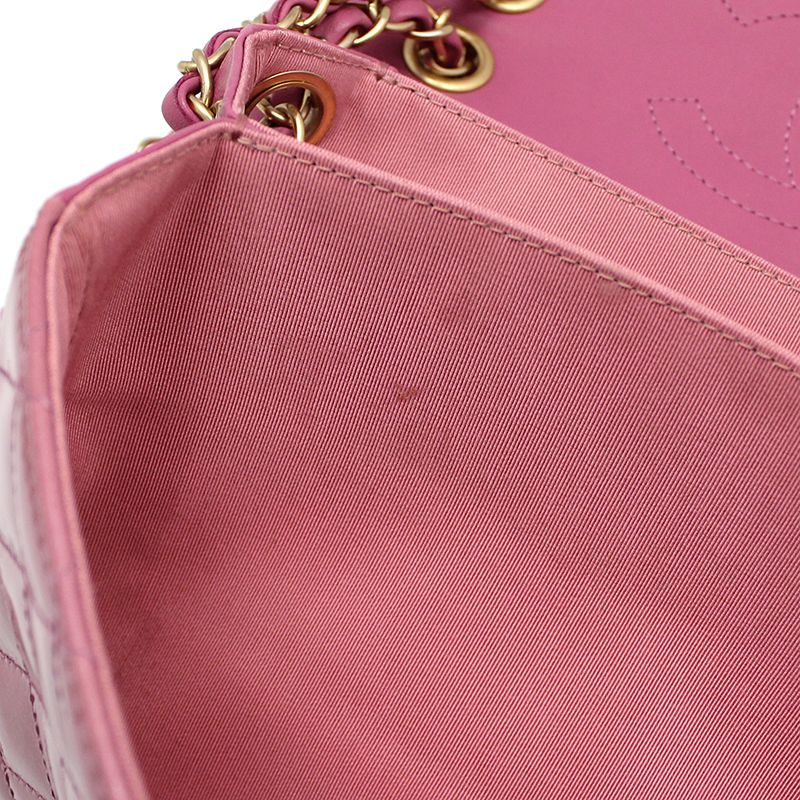 Produktname: Rosa Lackleder Goldlogo Pagoda Akkordeon Klappe Medium Schultertasche