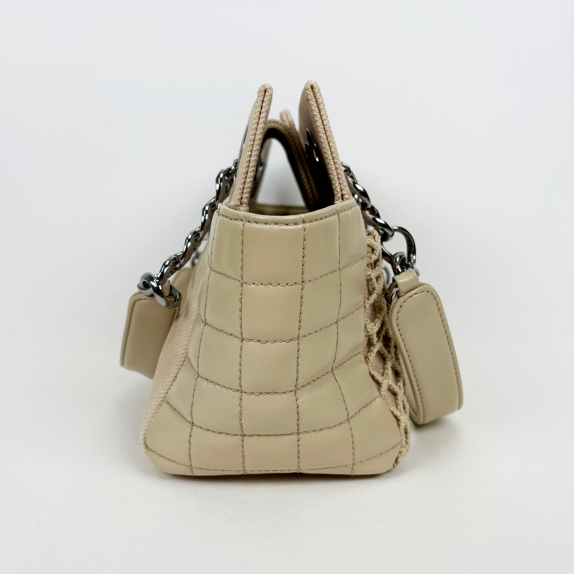 beige 8. serie schokoladenbar cabas netz schwarze nickelkette schultertasche 4vchb22086 104053542