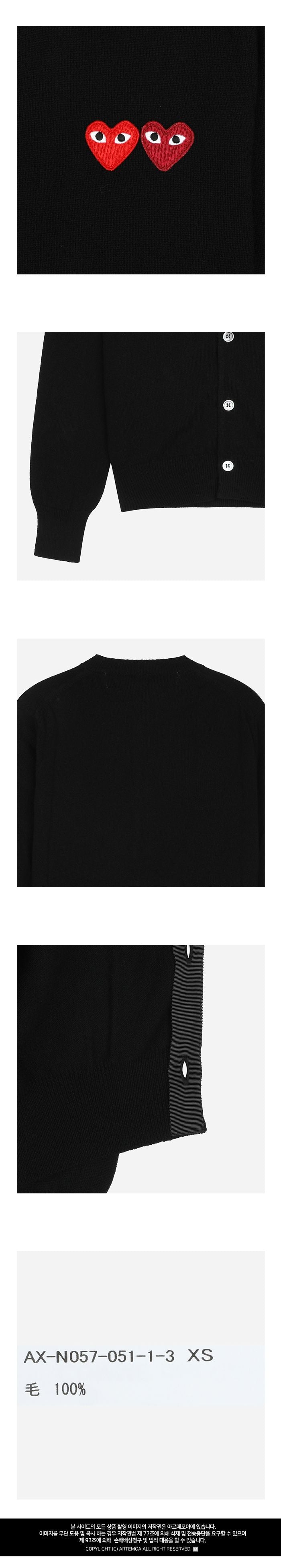 Product Name: Comme Des Garcons 5S Double Heart Cardigan Black AX N057 051 1 136612554