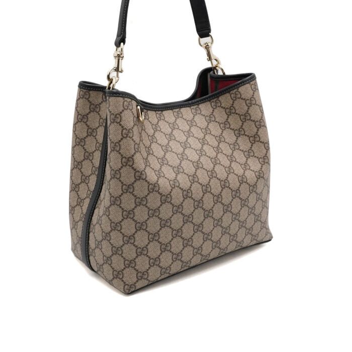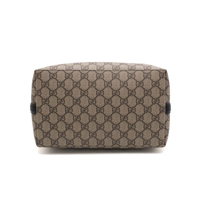 - Beige/dunkelbraun, neues GG Monogrammbeschichtetes Material mit schwarzem Lederbesatz und kontrastierenden Nähten.