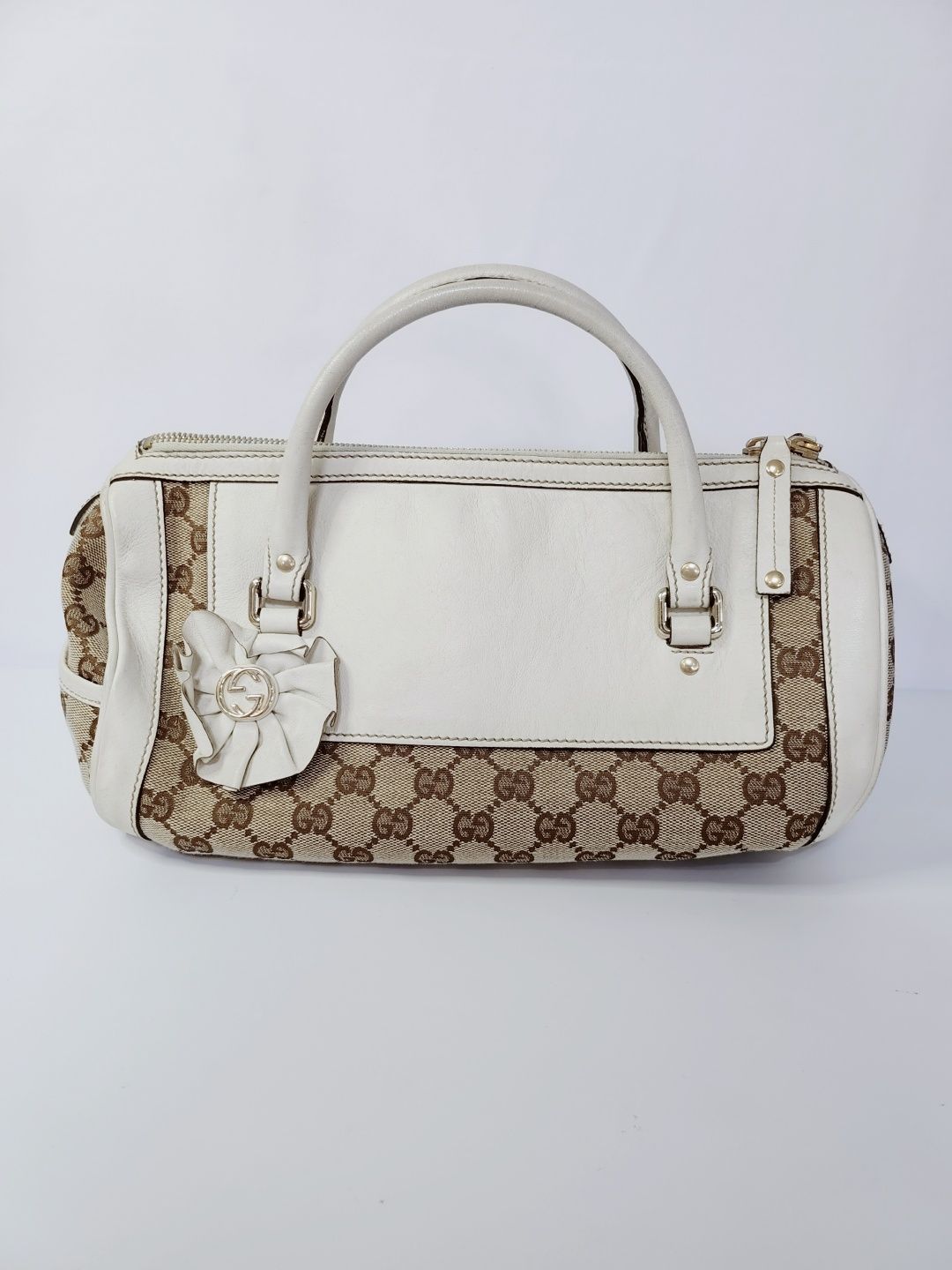 gg-logo jacquard leder zylindertote tasche 138091167