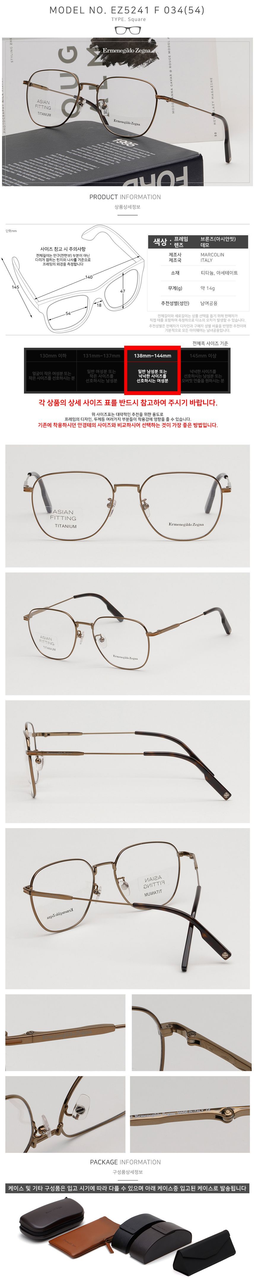 Produktname : Zegna Titanbrille EZ5241F 034 Leichte Luxus-Asiatische Passform Bronze Quadrat