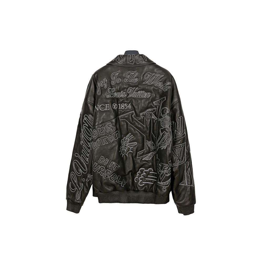 Produktname: Schwarze Kalbsleder bestickte Bomberjacke 56