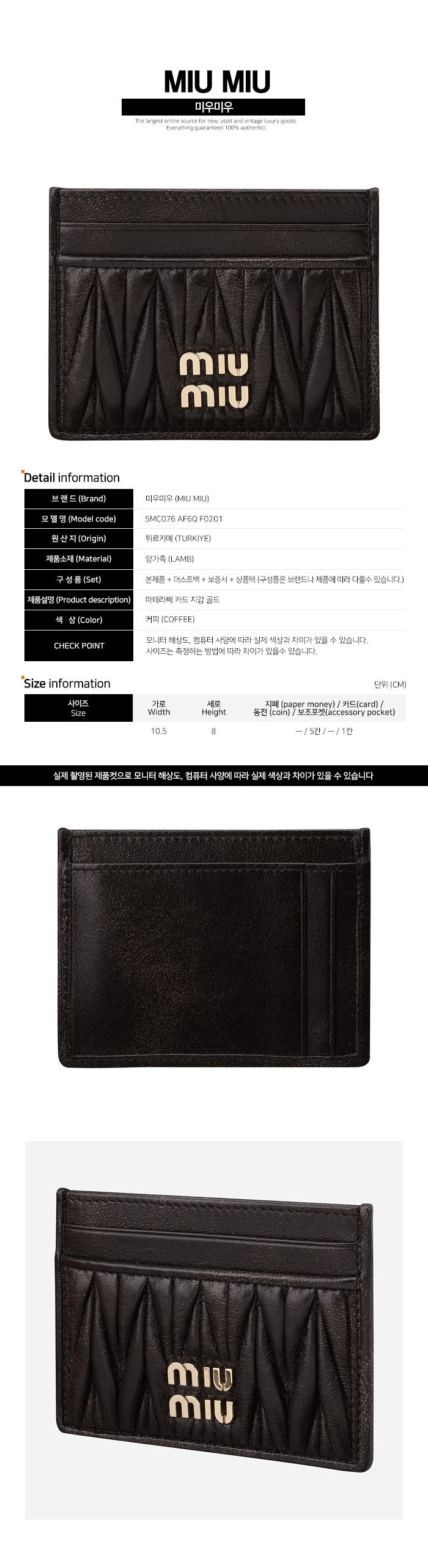 Product Name: Miu Miu 5F Materasse Card Holder Coffee 5MC076 AF6Q F0201 148778728