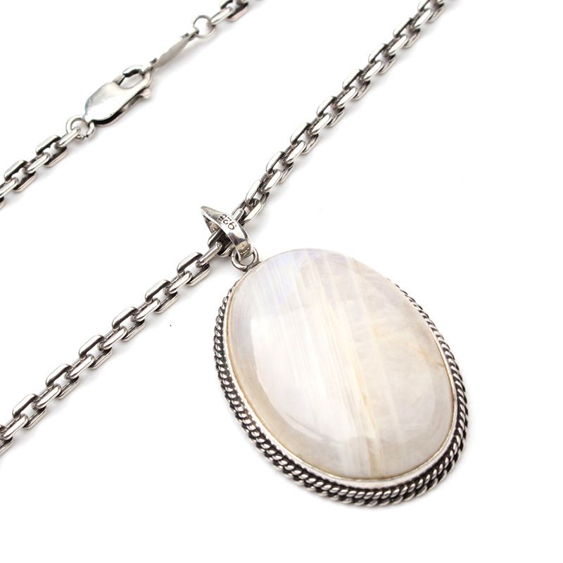 - Mondstein-Anhänger kombiniert mit Silber für eine markante Präsenz