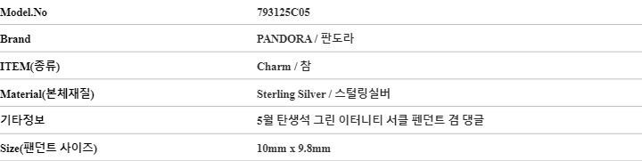 Product Name: Pandora May Birthstone Green Eternity Circle Pendant and Dangle Silver Charm 793125C05 144701949