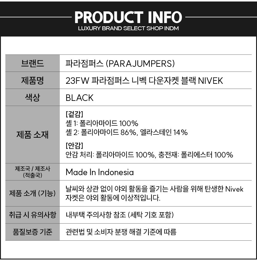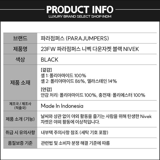 Produktname : Parajumpers Daunenjacke Schwarz 23FW (NIVEK)