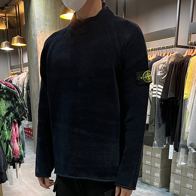 Produktname: Wappen Patch Rollkragen Baumwoll Strickpullover Marineblau (V0020 7715513A5)