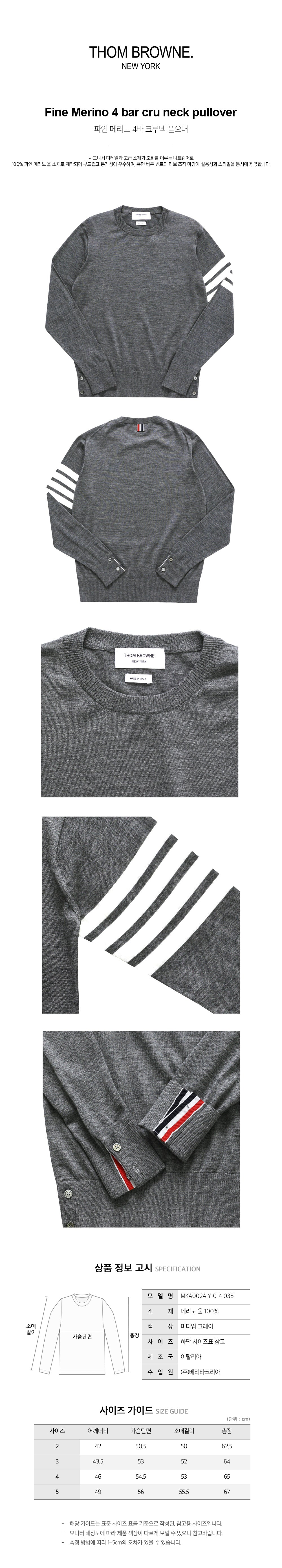 Product Name: Thom Browne Fine Merino 4-Bar Crew Neck Pullover Medium Grey MKA002A Y1014 038 117787445