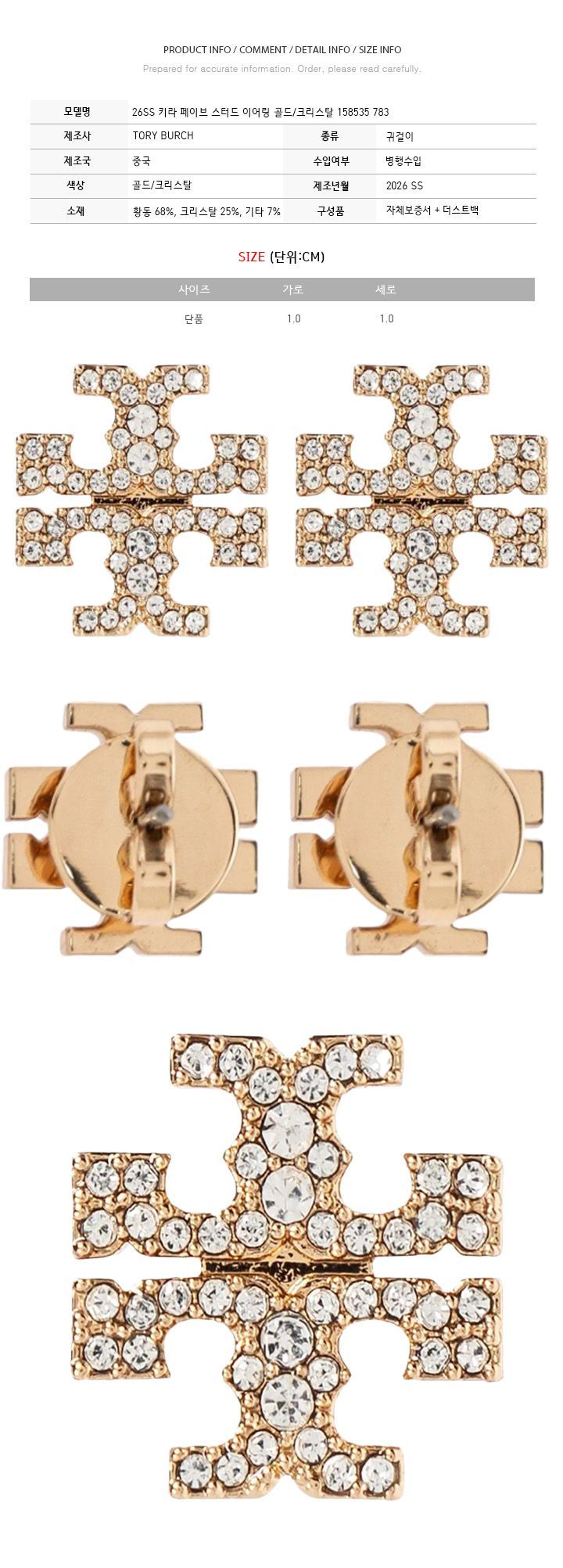Product Name: Tory Burch 26SS Kira Pave Stud Earring Gold Crystal 158535 783 151008813