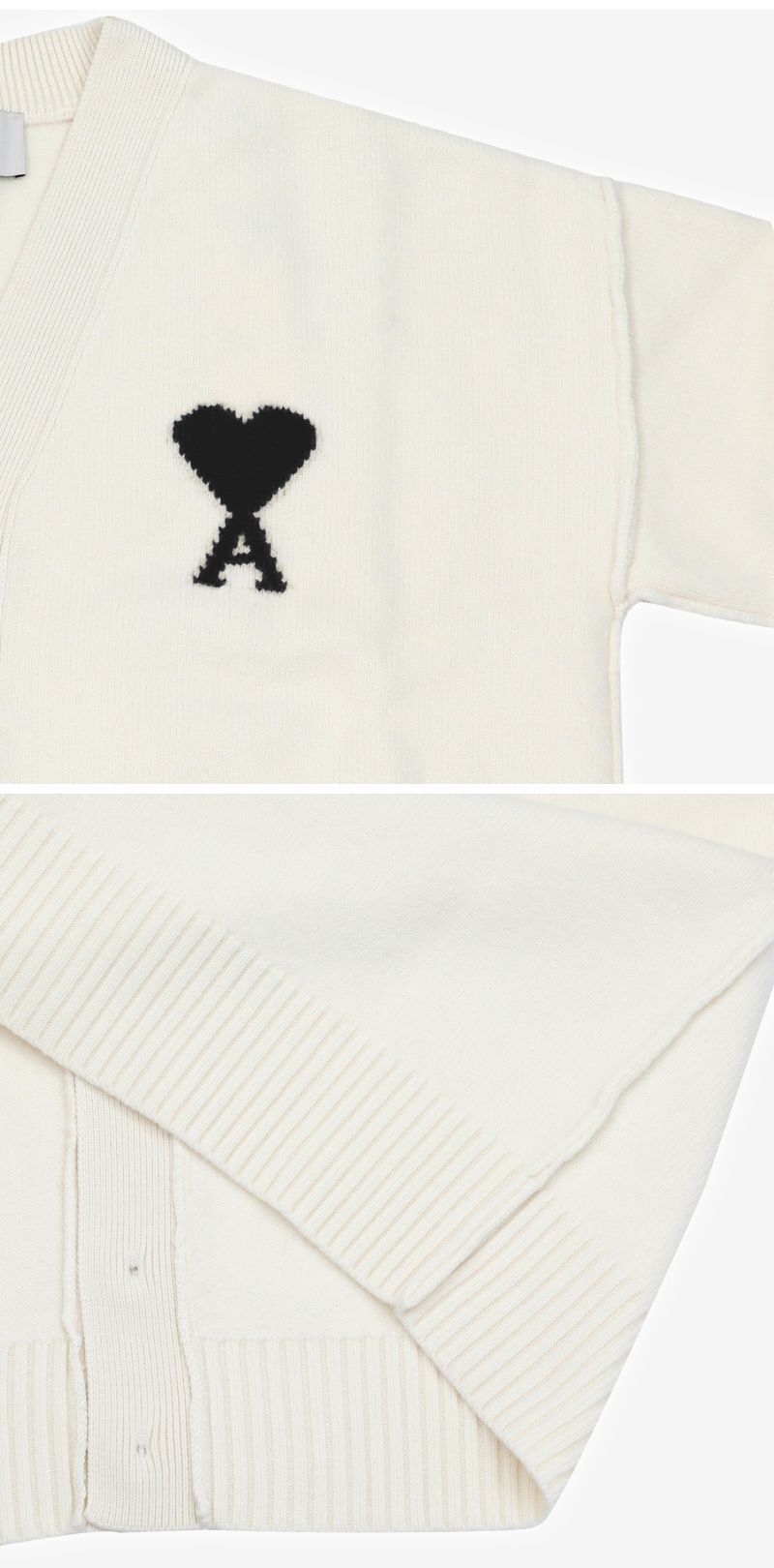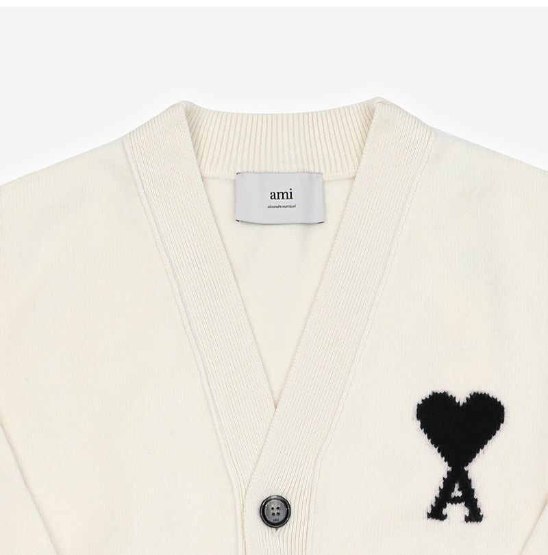 Product Name: AMI Big Heart Logo Intarsia V-Neck Cardigan 144591816