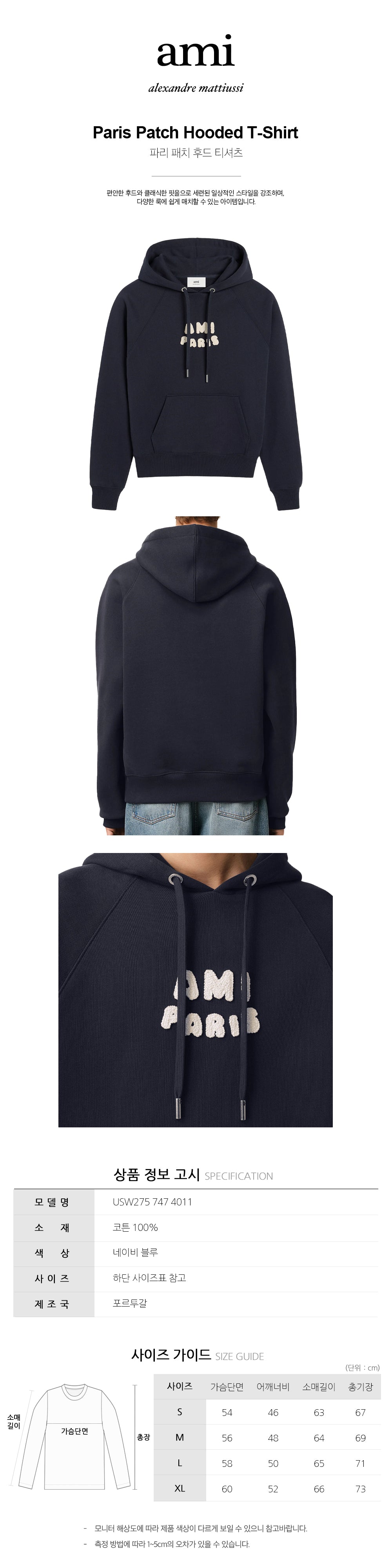 Product Name: AMI Paris Patch Hooded T-Shirt Navy Blue USW275 747 4011 136043958