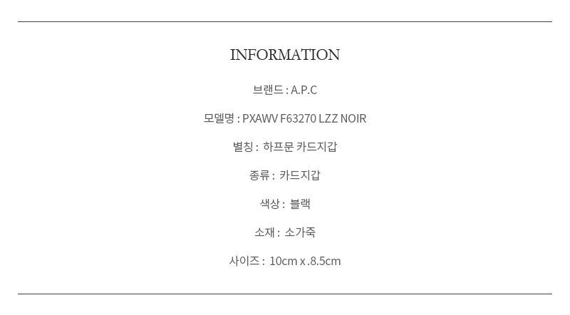 Product Name: APC F63270 LZZ NOIR DEMI-LUNE Half-Moon Cardholder 144730861