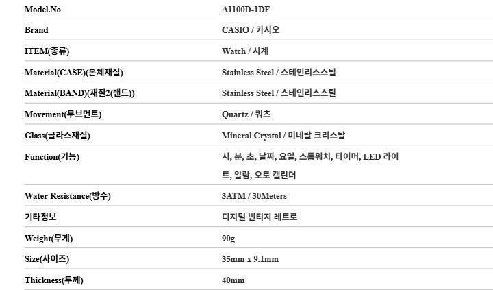 Product Name: Casio A1100D-1DF Digital Vintage Retro Unisex Metal Watch 147856309