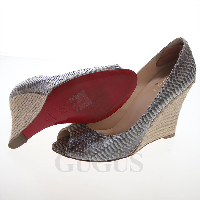Product Name: Christian louboutin Python Open Toe Wedge Shoes 126633