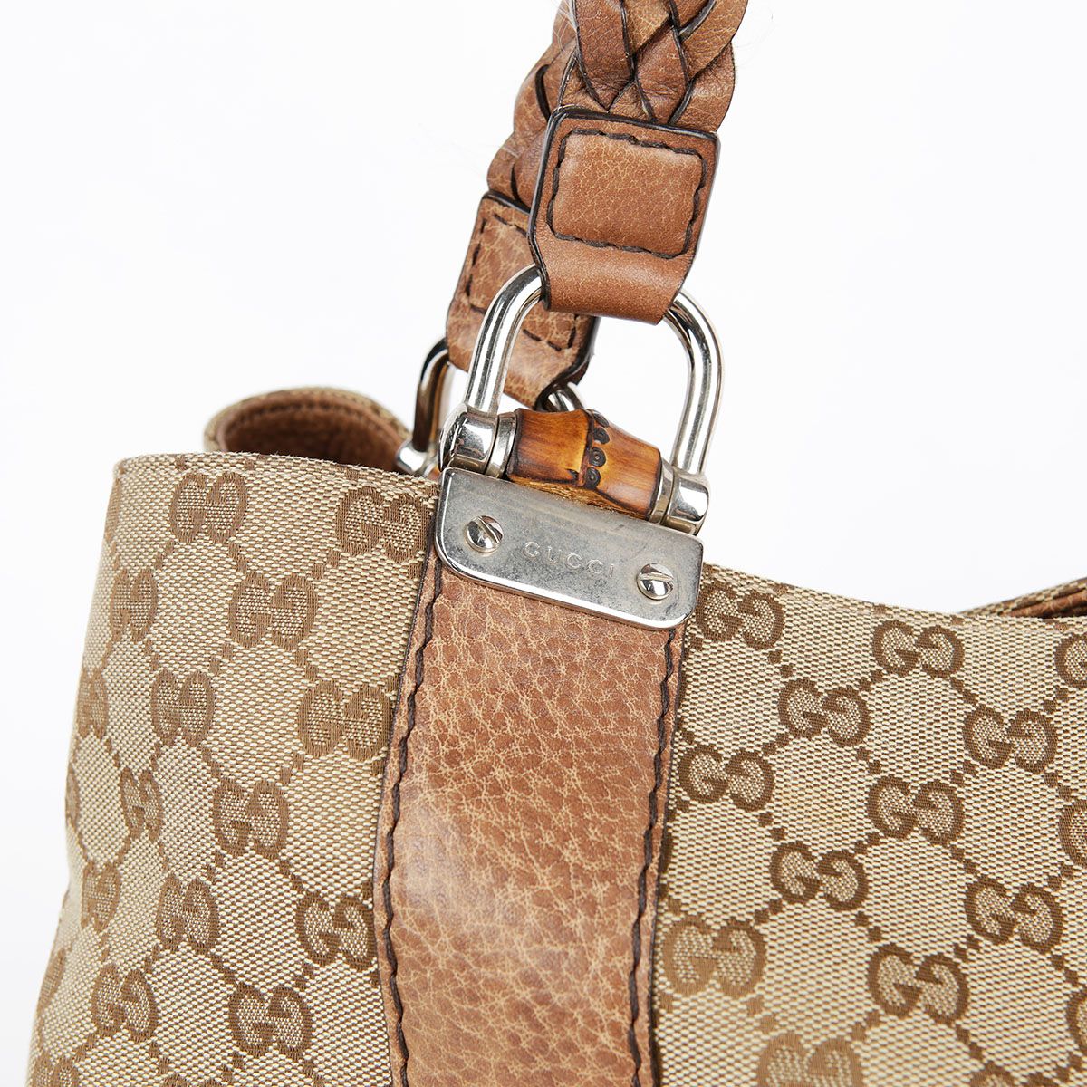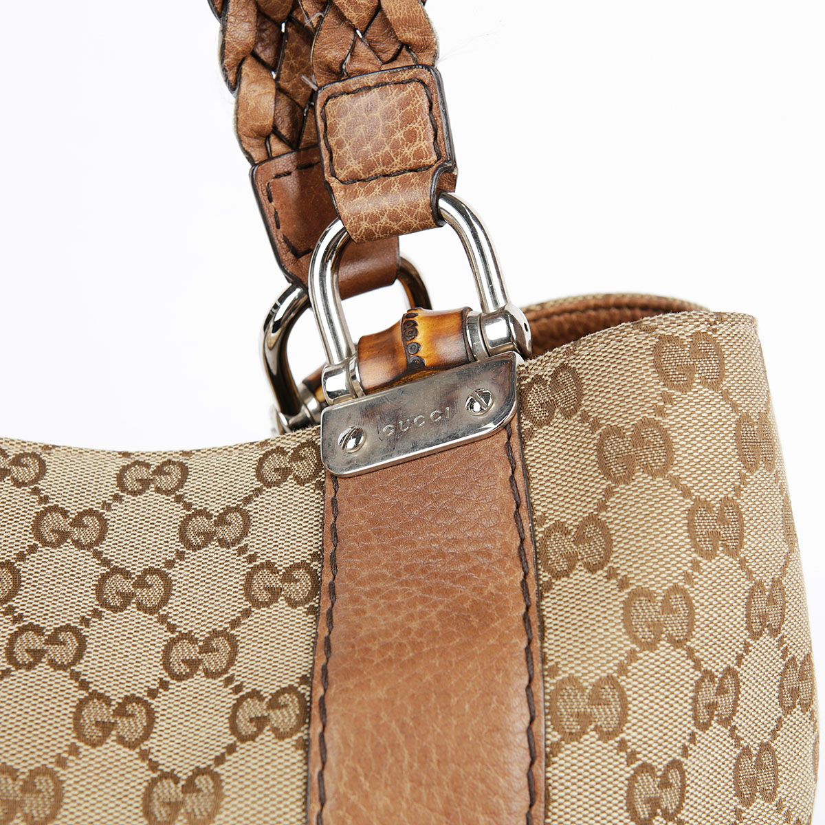 Product Name: Gucci Brown Leather Trimming Bamboo Decoration Tote Bag 232947 30079407