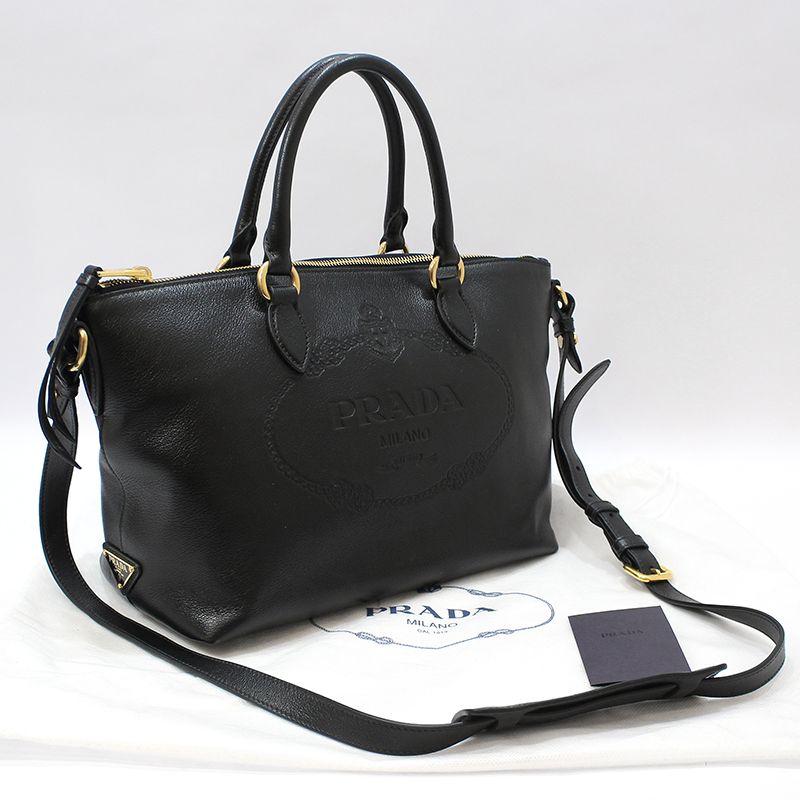 Product Name: Prada 1BA104 Black Grace Calfskin Embossed Logo Gold-tone Shoulder Bag 150217481