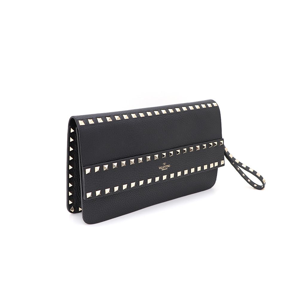 Product Name: Valentino Black Leather Goldmetal Rockstud Clutch Bag 84971266 149495855