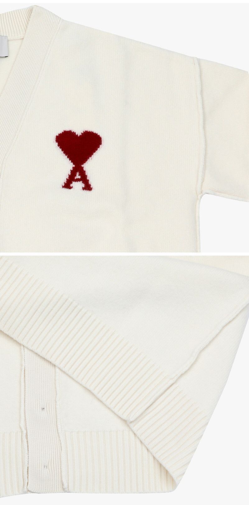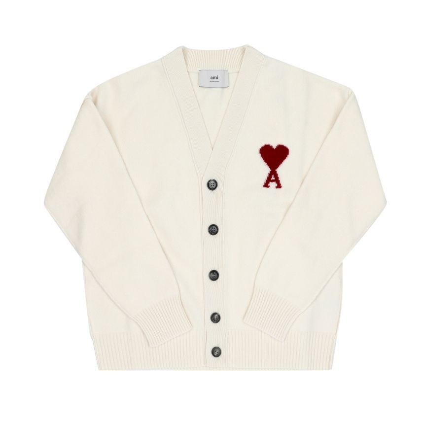 Product Name: AMI Big Heart Logo Intarsia V-Neck Cardigan 144591815