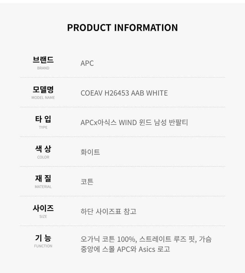 Product Name: APC H26453 AAB WHITE Men's Short Sleeve T-shirt 151112906