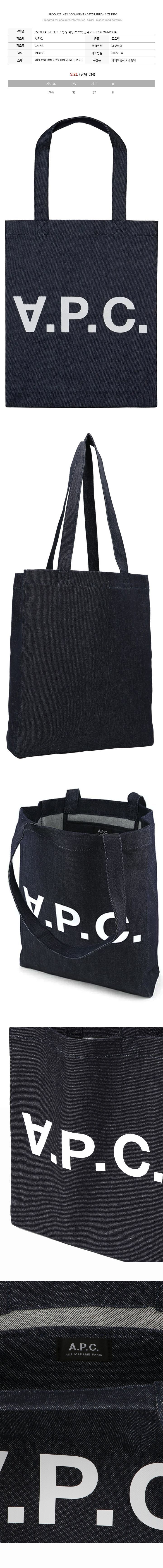 Product Name: APC Denim Tote Bag with Logo Print Indigo 152303224